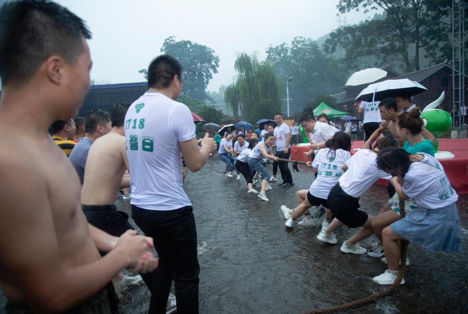 钢铁意志,热血青年。以两个部门为一组,每组以十男五女为标准搭配进行拔河比赛,销售部八个部门加上后勤部和生产包装部共计十个部门两两一组进行轮回淘汰赛,最终获胜者取前1、2、3名进行奖励。现场的气氛瞬间高涨,即使倾盆大雨也难抵我们激情似火的呐喊。