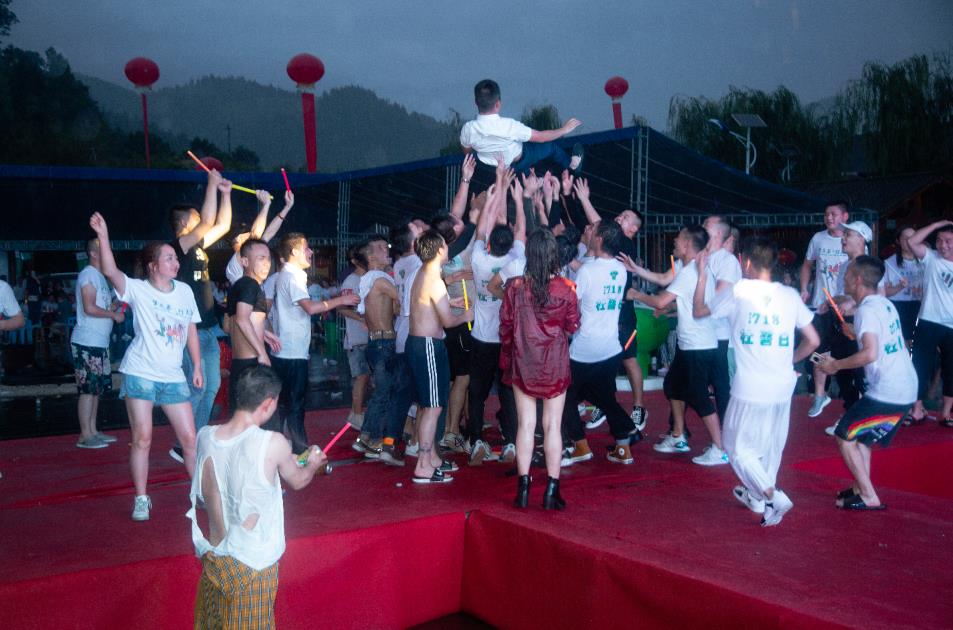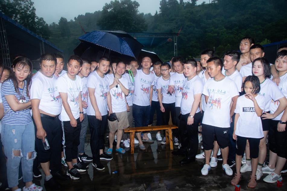也许是我们的热情过高,加之天气炎热,老天都开始眷顾起来,还没到目的地天空便洒下雨水为我们降降温,除除暑!不过为了安全,大家都齐聚桂花苑后还是延后了节目表演,待降雨变小不影响行动后,精彩的娱乐节目终于开始上演了!