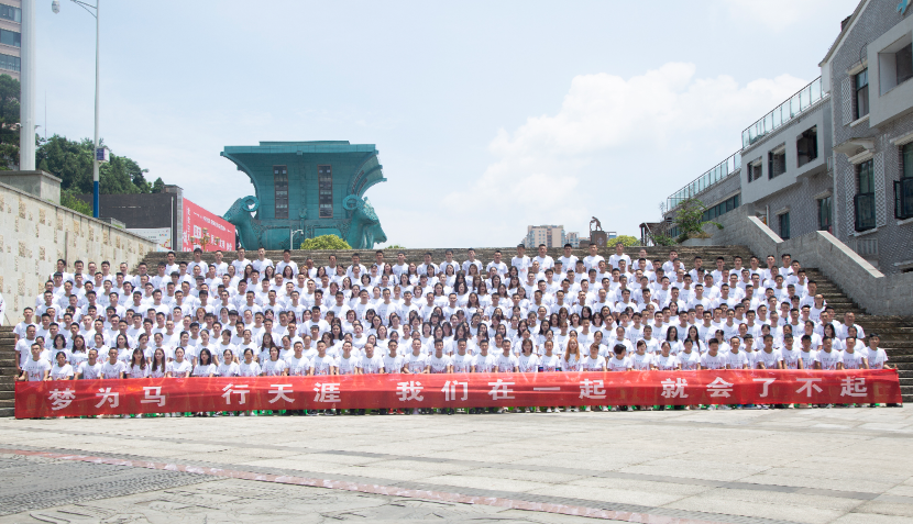 在各部门负责人的组织带领下,公司全体家人很快来到了酒都广场,根据部门列队,全公司400余号人在酒都广场的阶梯中央排排站列,当庞大的队伍齐声喊出“杜酱酒厂,共创辉煌。好好学习,天天向上”的口号和“香柔酱香,香满天下”的使命时,回荡在广场中央的声响在每个人心中激起了层层涟漪,那种振奋人心的自豪感油然而生,我相信,此时杜酱的每一位家人的心情都如今日高挂的艳阳般炙热!